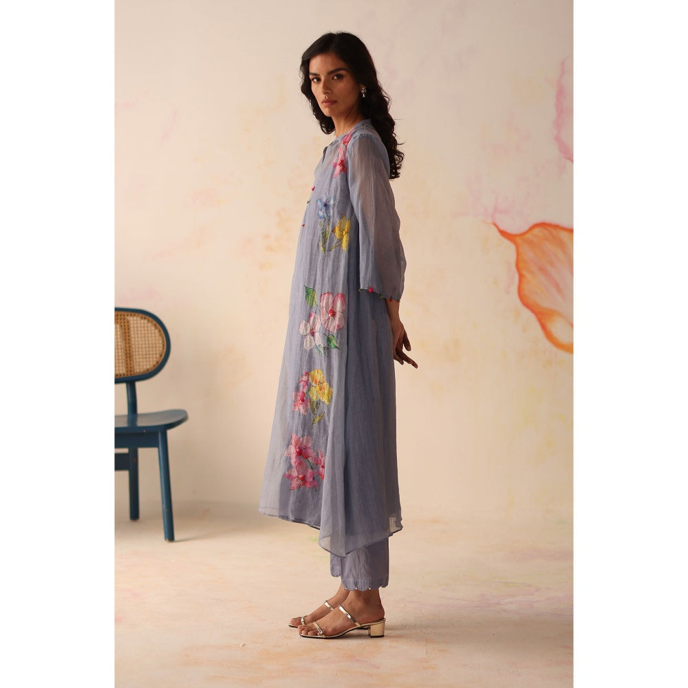 Begum Pret Blue Kesar Kurta with Pant and slip (Set of 3)