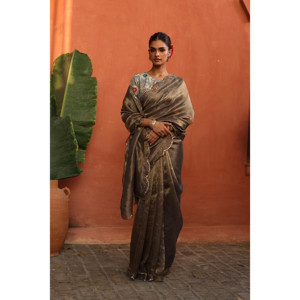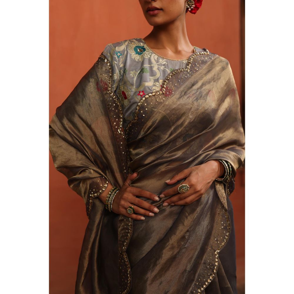 Begum Pret Grey Gulkand Saree with Stitched Blouse