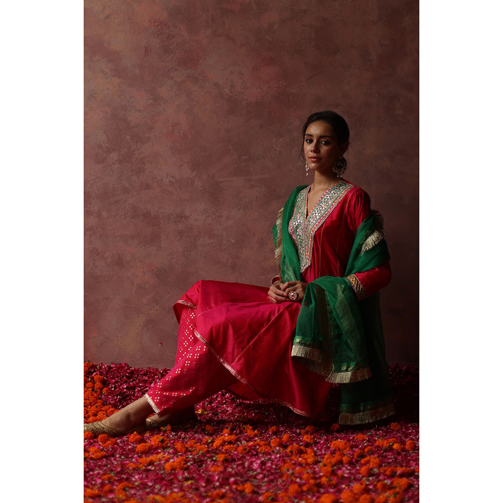 Begum Pret RUMI Pink Kurta with Pant & Green Dupatta (Set of 3)
