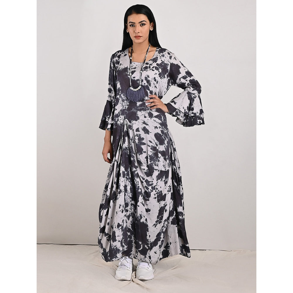 Bohame Chloe Light Grey Pleated Dress with Neckpiece (Set of 2)