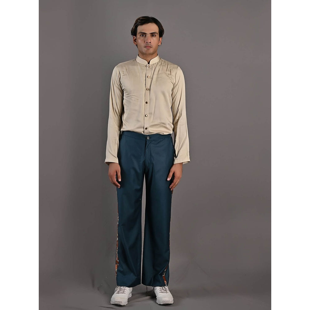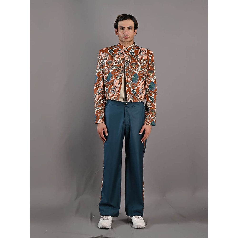 Description : Enhance your wardrobe with our Corey Short Jacket with Snap Button Closure, Shirt & Pants set with contrast print panel on side.