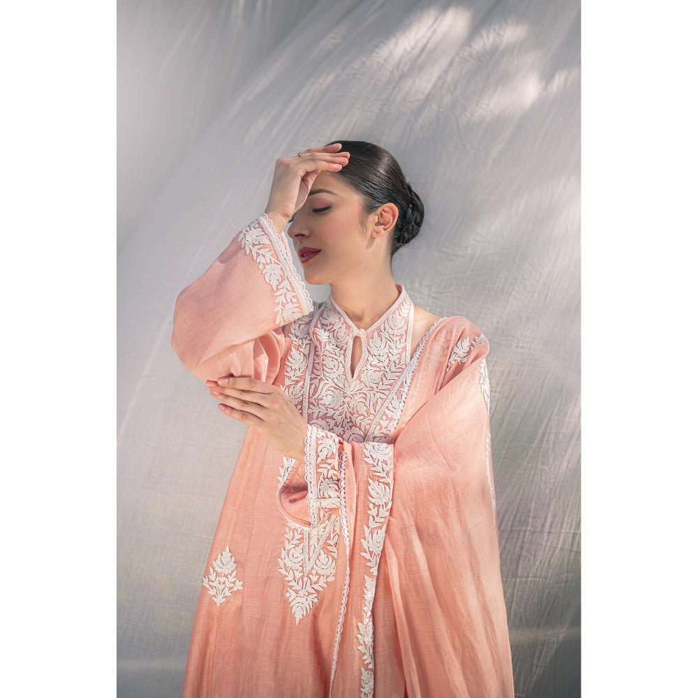 Daljit Sudan Pastel Pink Silk Chanderi Kurta with Pant and Dupatta (Set of 3)