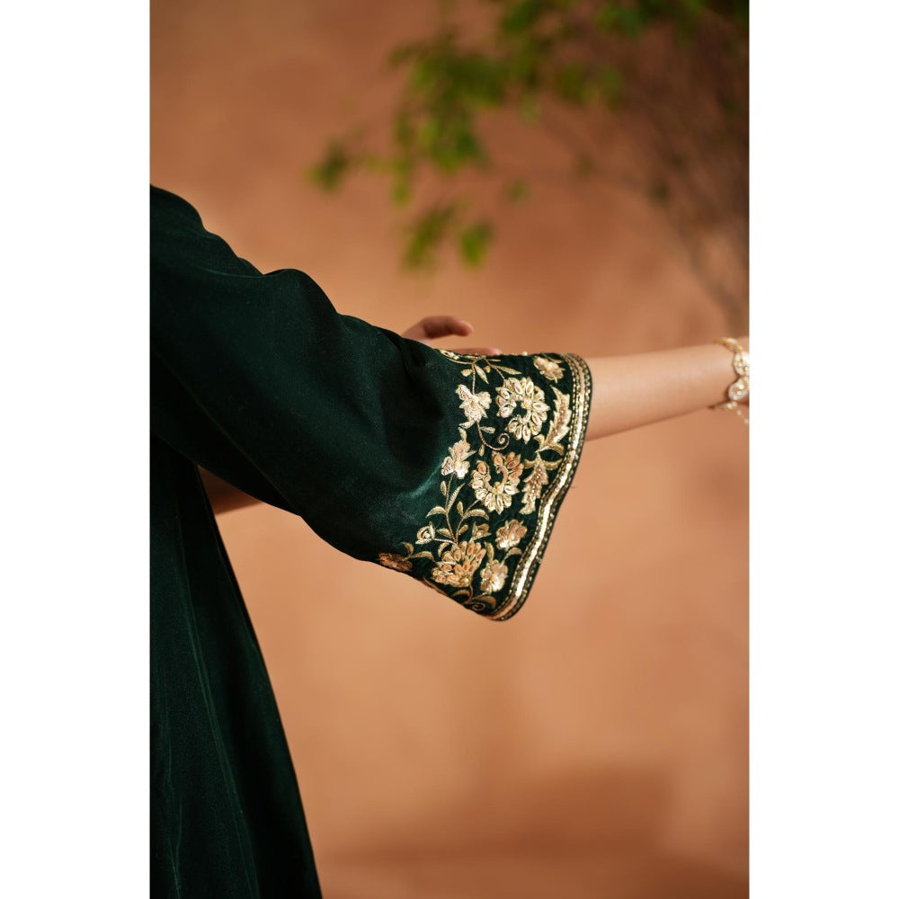 Deepika Chadha Emerald Green Velvet Embroidered Co-Ord (Set of 2)