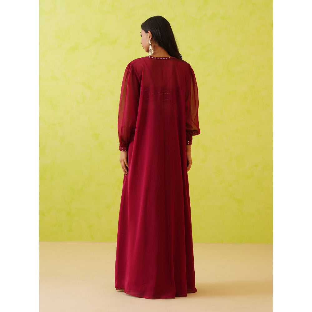Deepika Chadha Maroon Embroidered Crop Top with Shrug and Skirt (Set of 3)