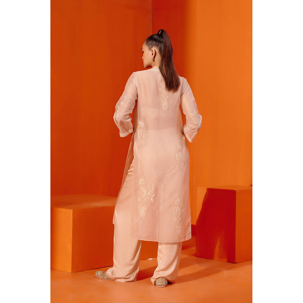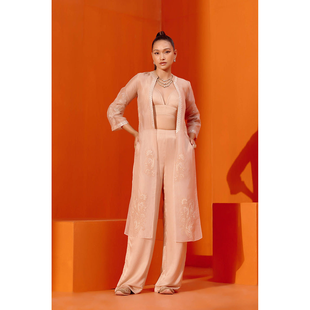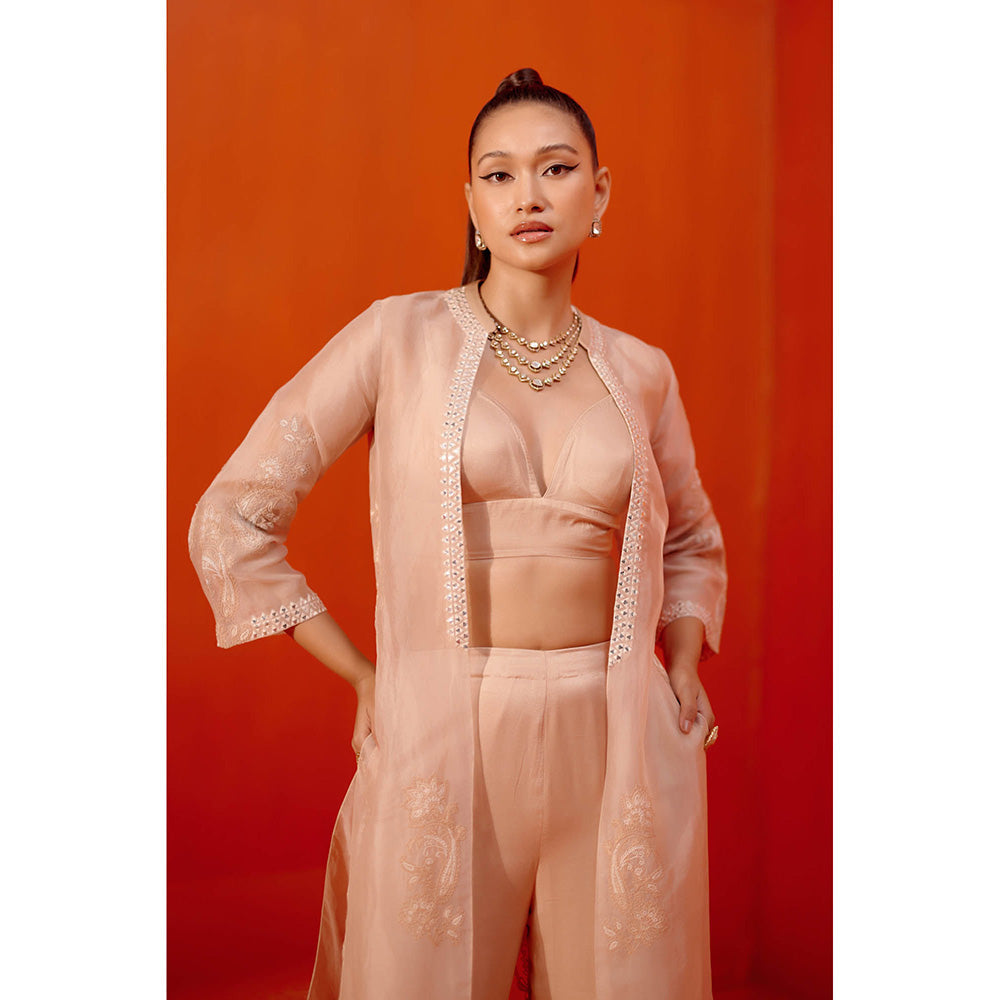Devnaagri Beige Embroidered Cape & Pant (Set of 3)
