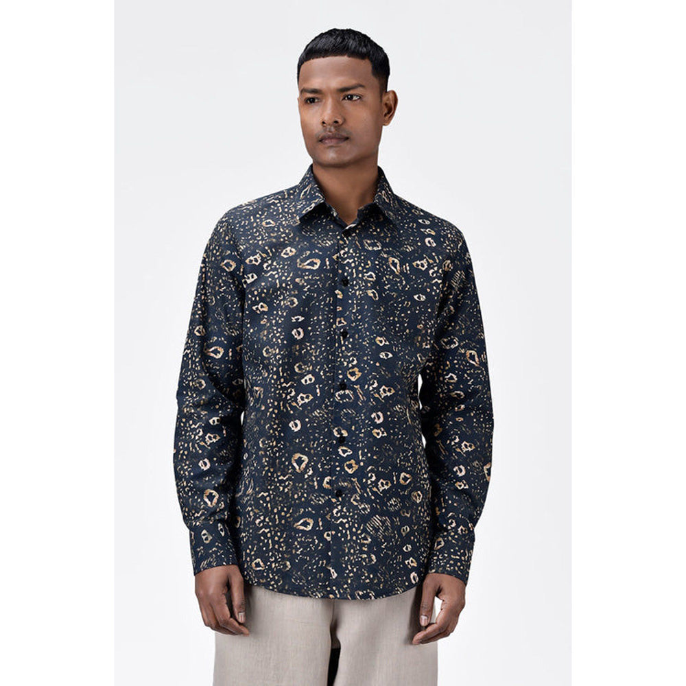 Khaki Cotton Poplin Regular Fit Shirt With Animal Print