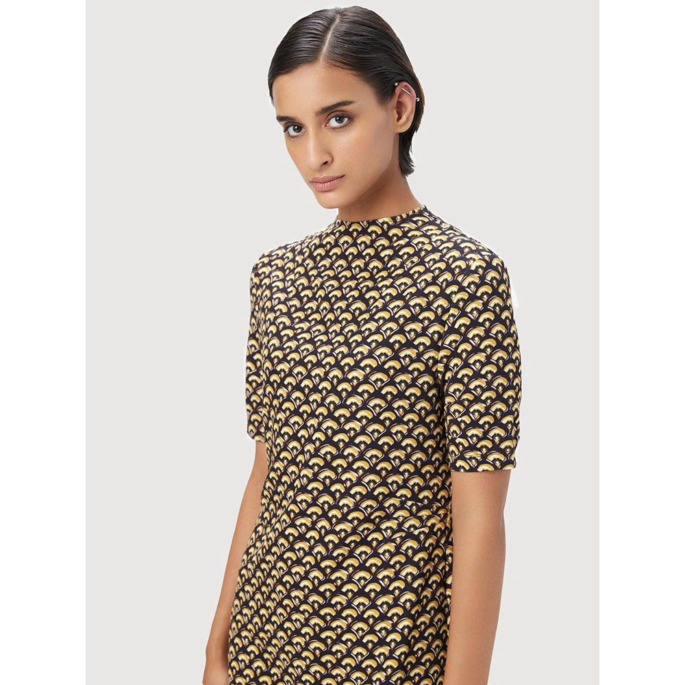Genes Lecoanet Hemant Women's Yellow Printed Midi Length Dress