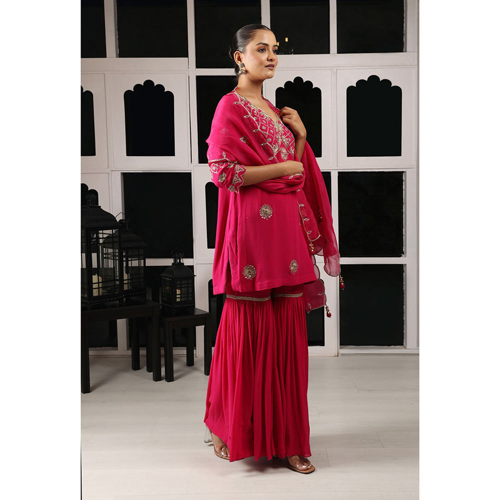 House of Supriya Pink Embellished Kurta & Sharara with Dupatta (Set of 3)