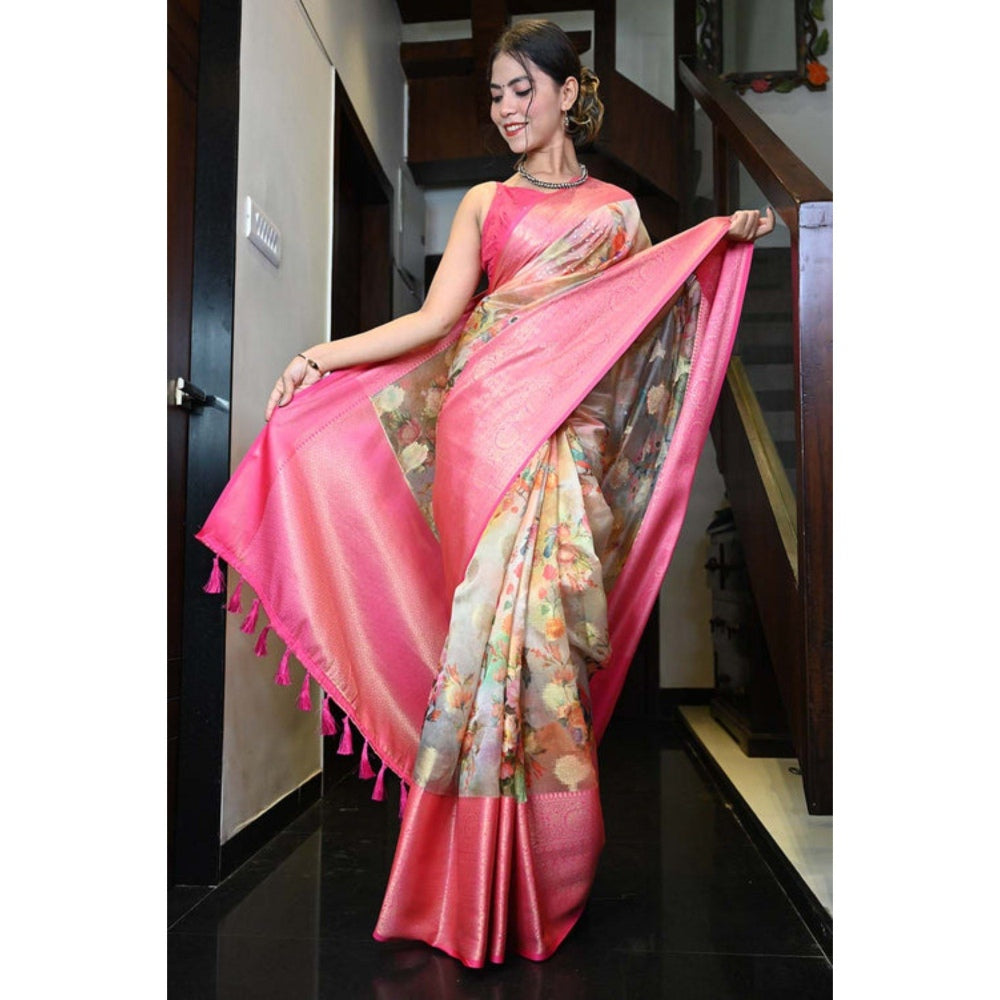 Isadora Life Womens Floral Tassels Multi-Color Pre-Draped Saree with Unstitched Blouse