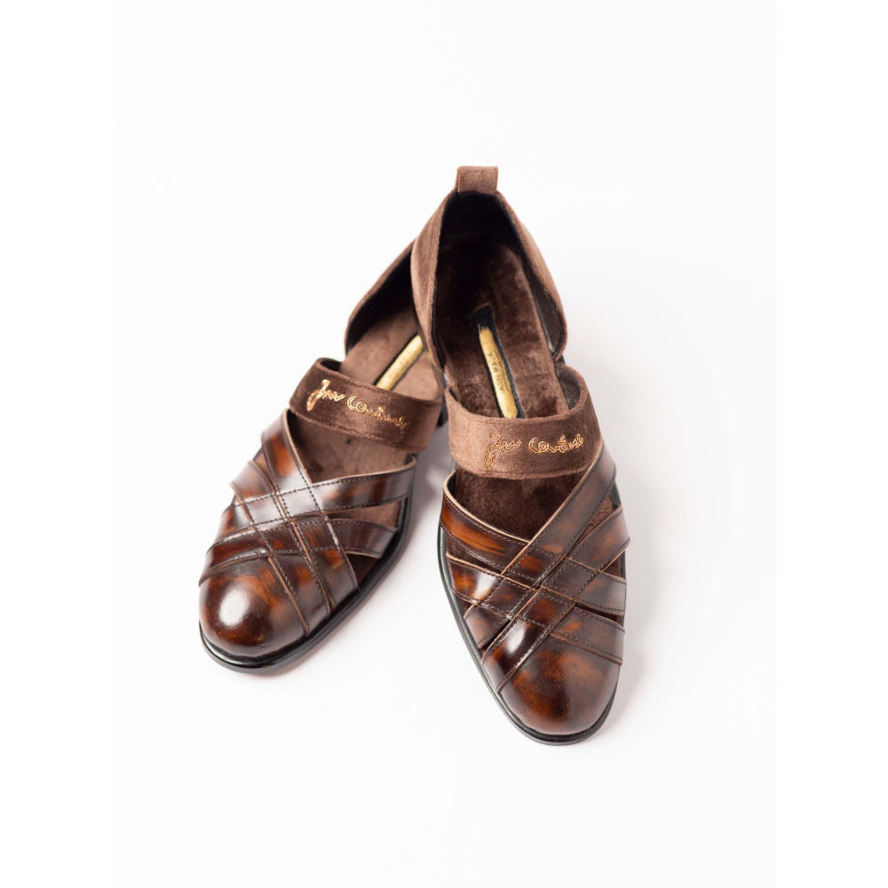 Jatin Malik Coffee Brush off closed toe Peshawari Formal Shoes