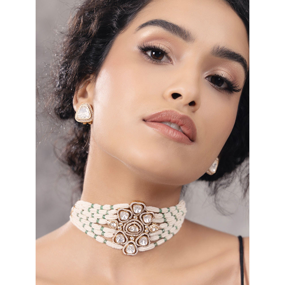 Joules By Radhika Polki-Pearl Glamorous Choker Necklace