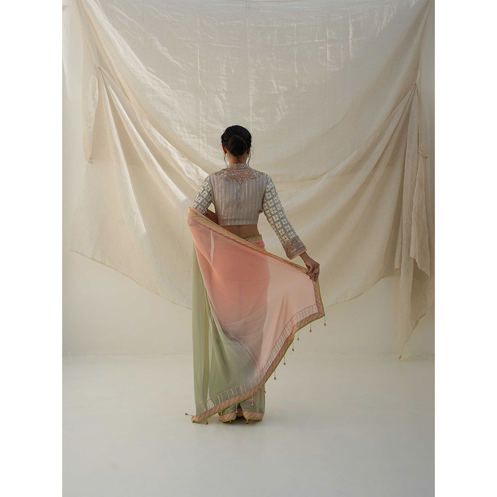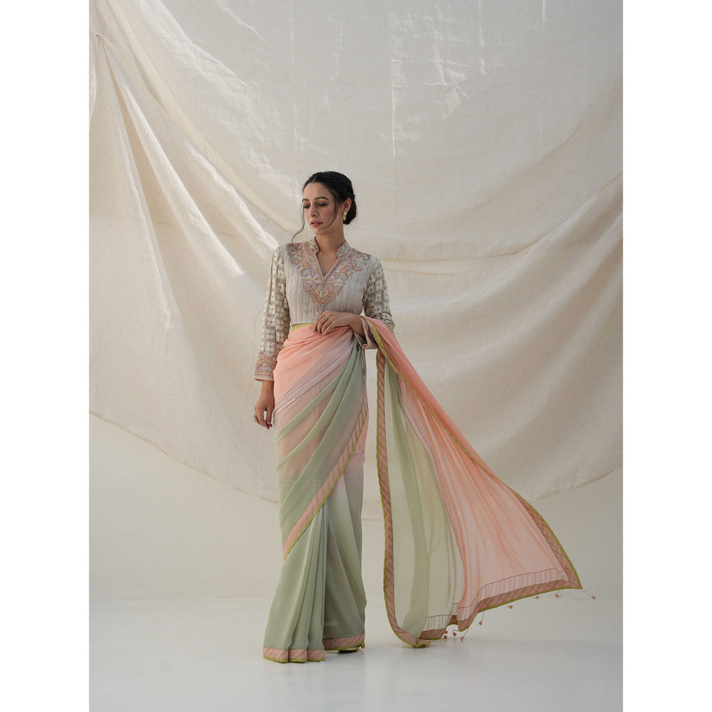 Kanika Sharma Ombre Georgette Embroidered Border Multi-Colour Saree with Stitched Blouse
