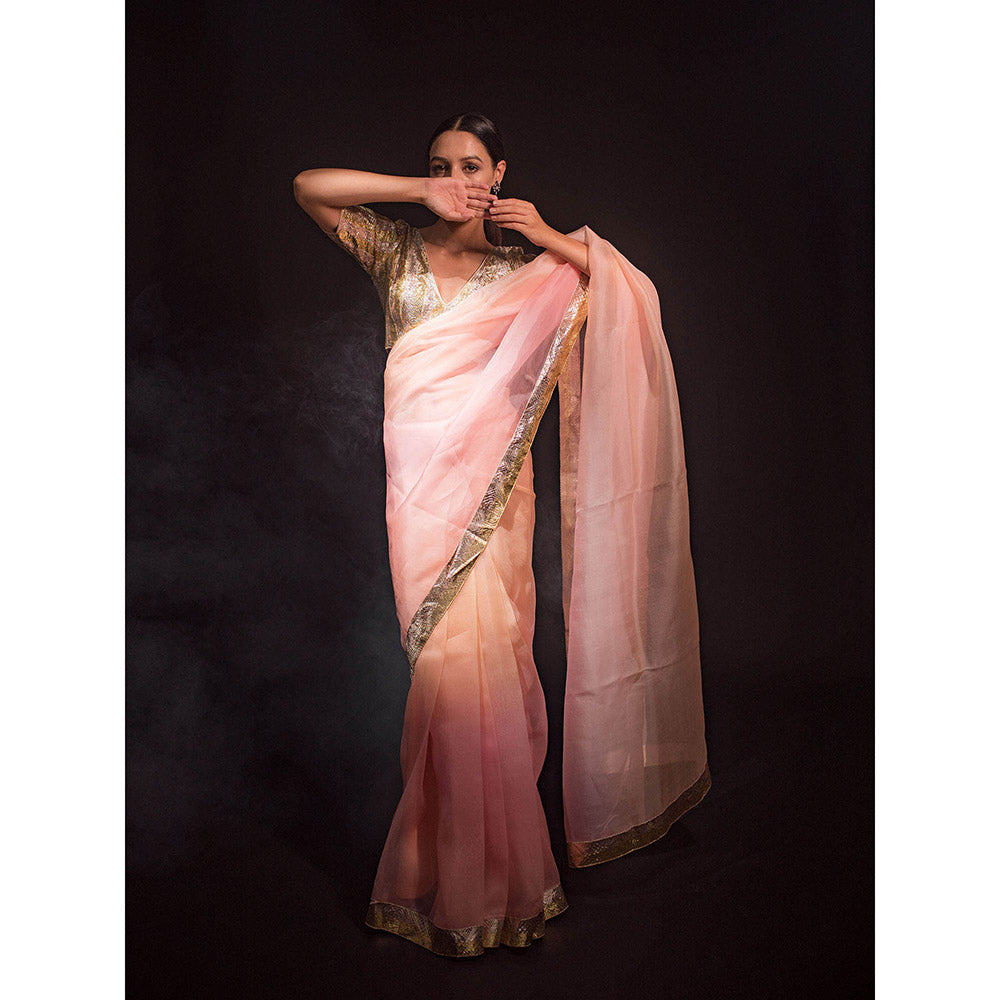 Rosette Nebula Saree A Shaded Pure Silk Organza Saree Handcrafted