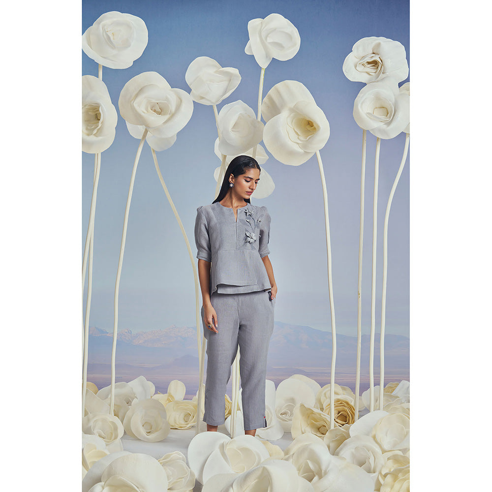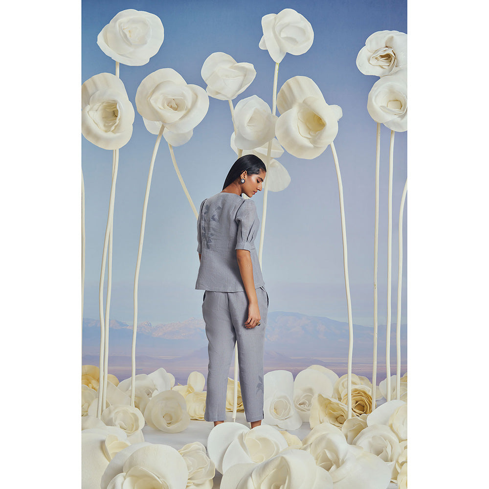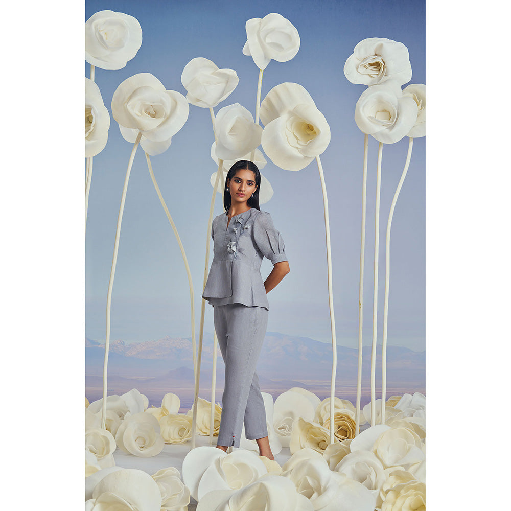 Kaveri Shadow Blue Lilly Burst Peplum Co-Ord (Set of 2)