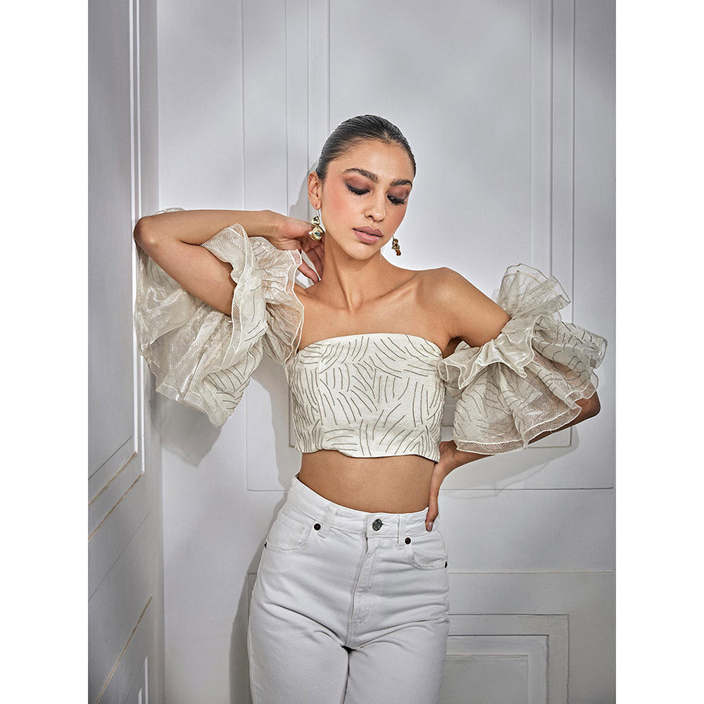 Kay Kay BY KKHUSHI SAHAII Off White Organza Chain Embroidered Crop Top