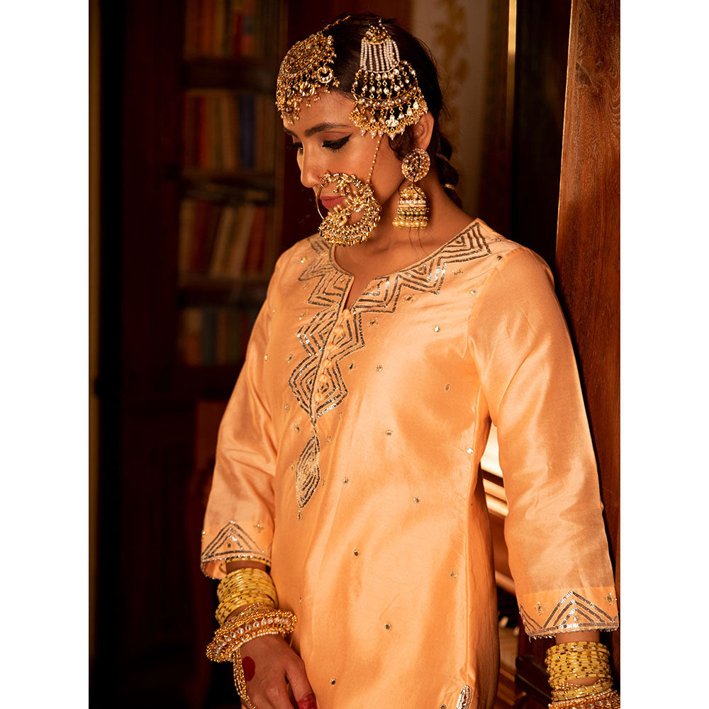 Maison Shefali Zara Gulaabi Chanderi Silk Kurta Pant (Set of 3)