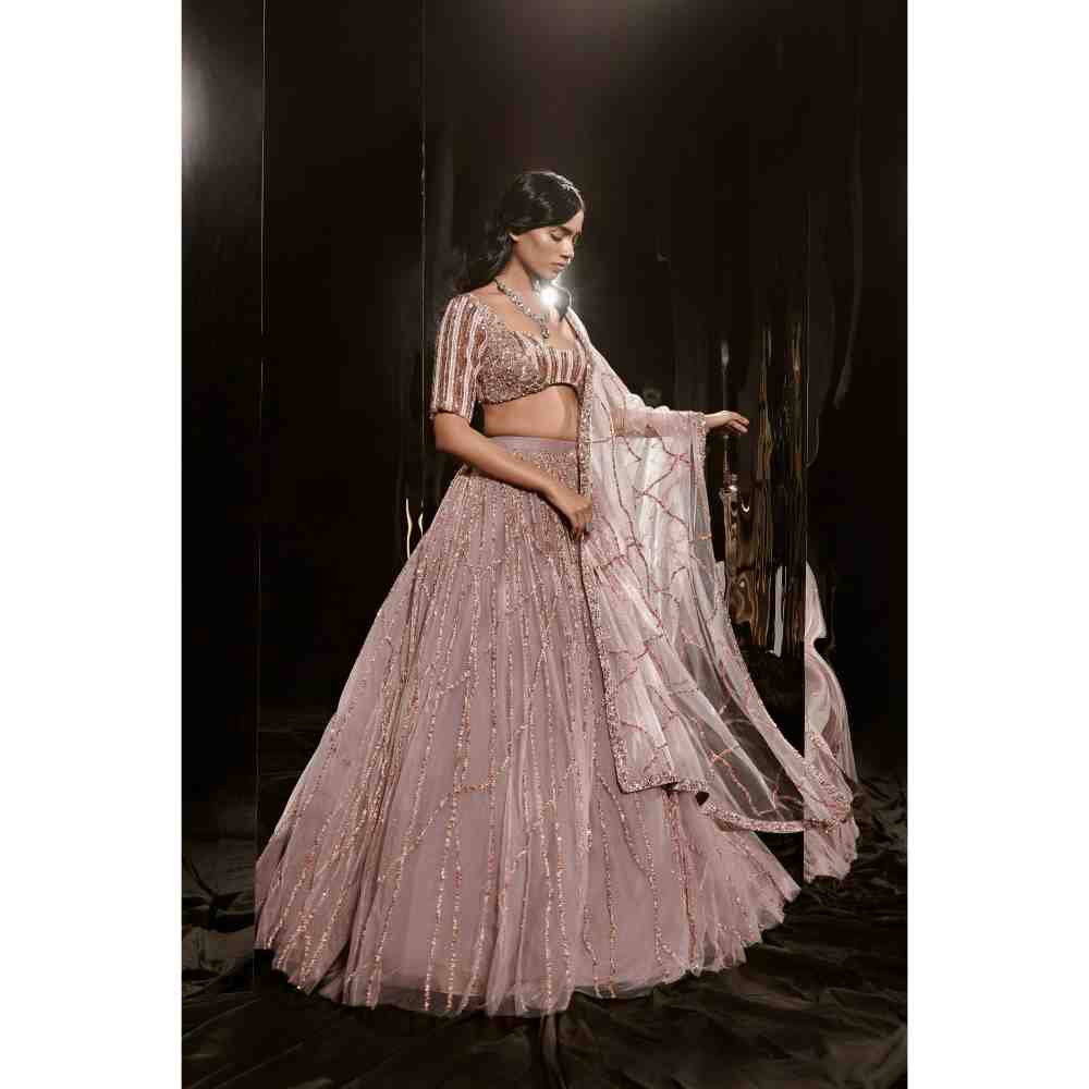Description : Give your ethnic closet a gorgeous makeover with the addition of this brown lehenga set from Masumi Mewawalla. Tailored from net, it is perfect for those who wish to make a statement. Consider teaming it with a pair of embellished heels.