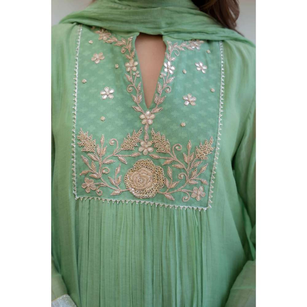 MINSH Green Ember Leaf Anarkali with Pant and Dupatta