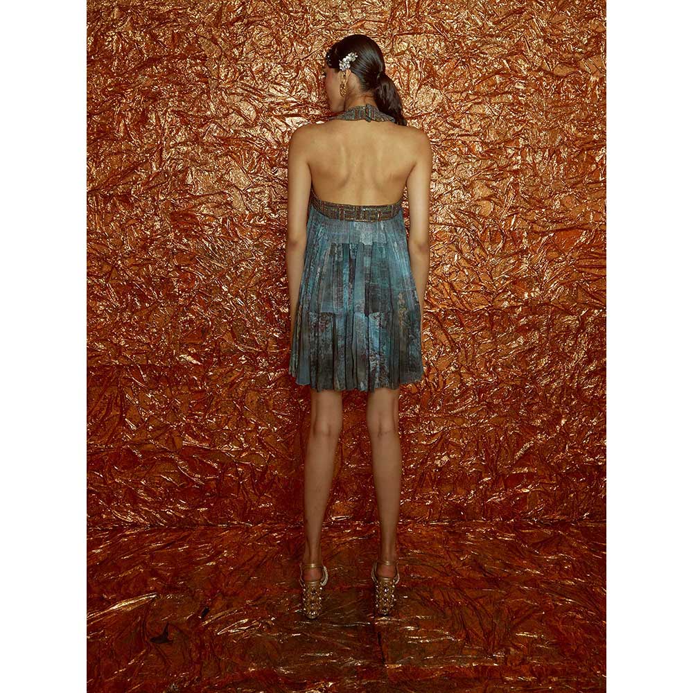 Nirmooha Printed Chiffon Tiered Mini Dress with Embellished Neckline
