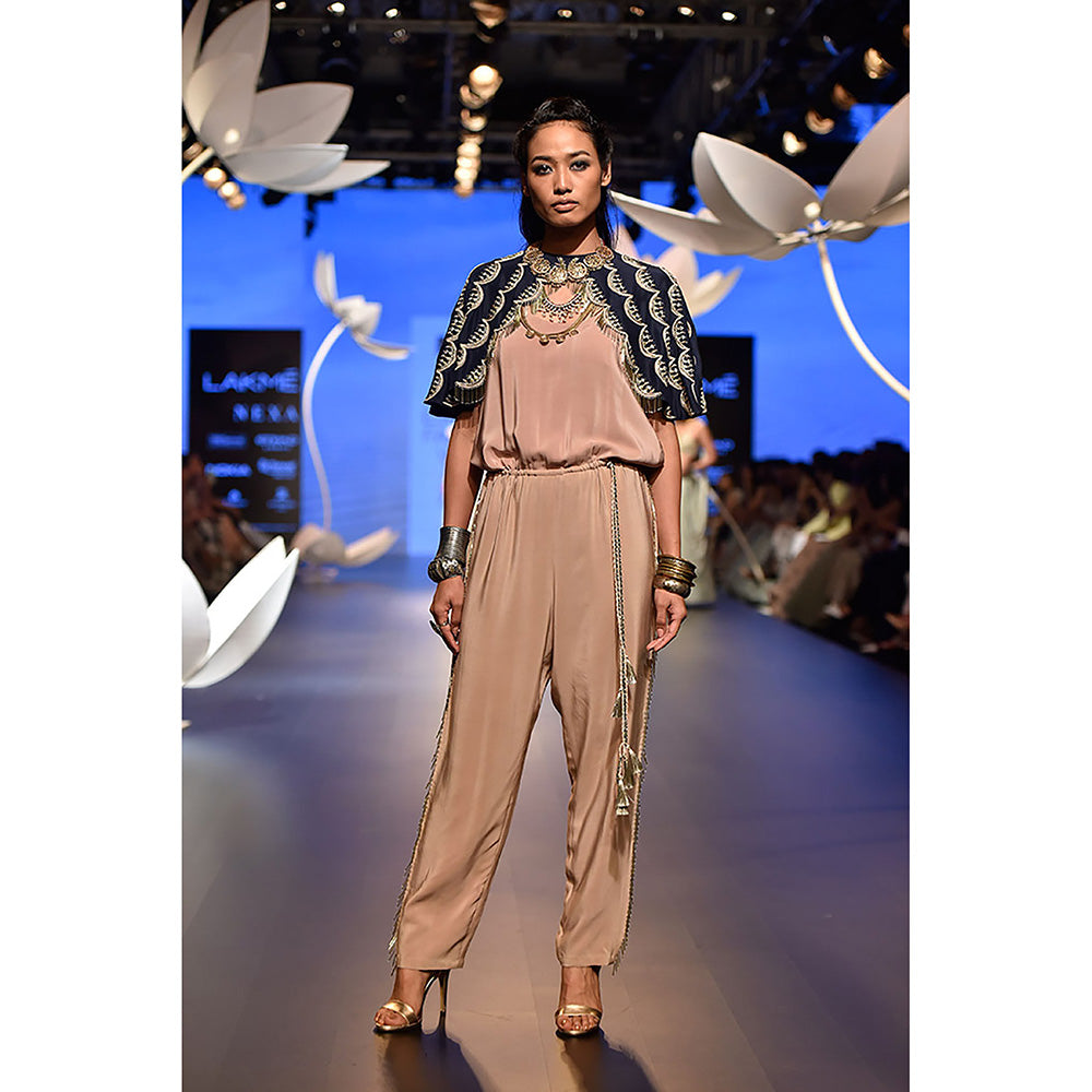 Payal Singhal Arka Navy Silk Cape with Rose Pink Crepe Jumpsuit (Set of 2)