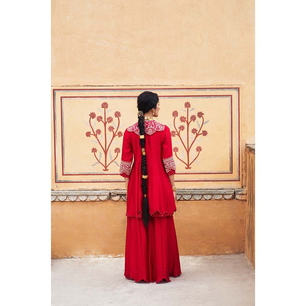 PINK CITY BY SARIKA Women's Maharani Sharara with Kurta and Dupatta Collar (Set of 4)