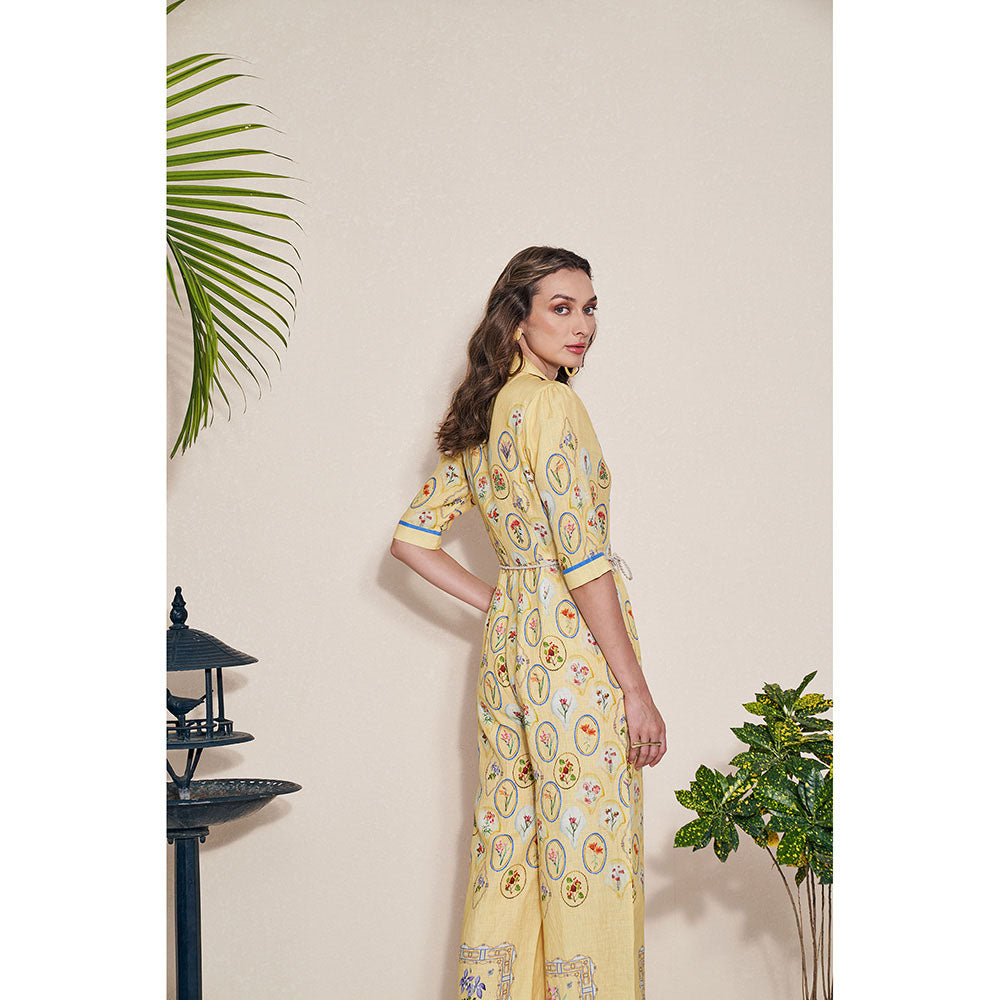 Pozruh By Aiman Moxie Printed Yellow Jumpsuit & Belt (Set of 2)
