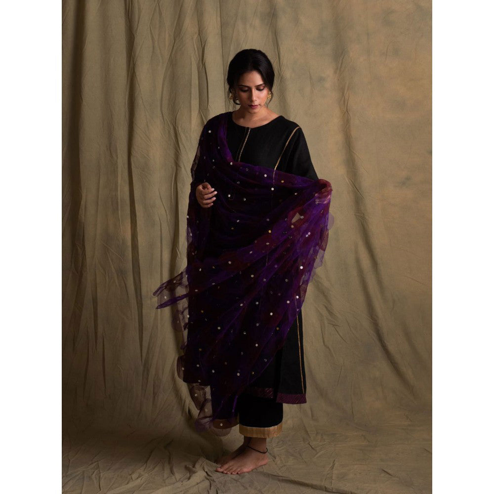 Aanya Black Linen Flowy Kurta with Palazzo (Set of 3)