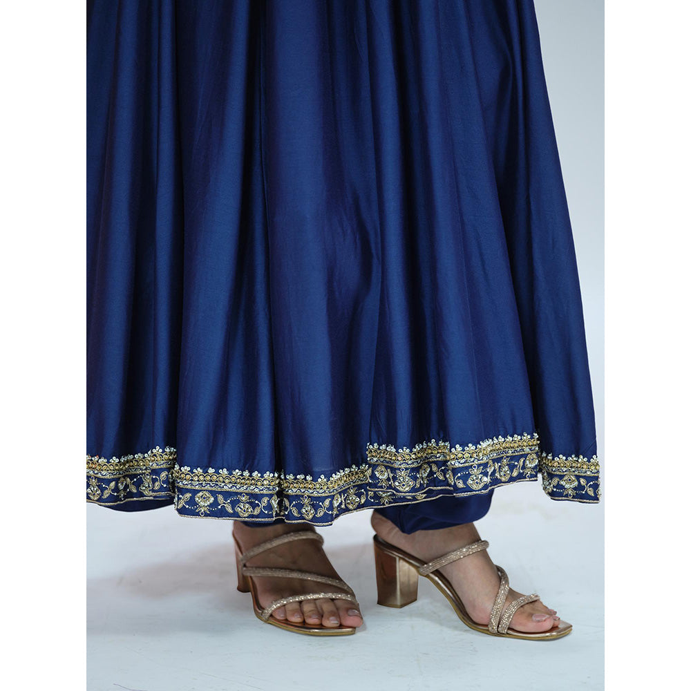 RAAG SUTRA Royal Blue Silk Anarkali Kurta with Jacket and Churidar (Set of 3)