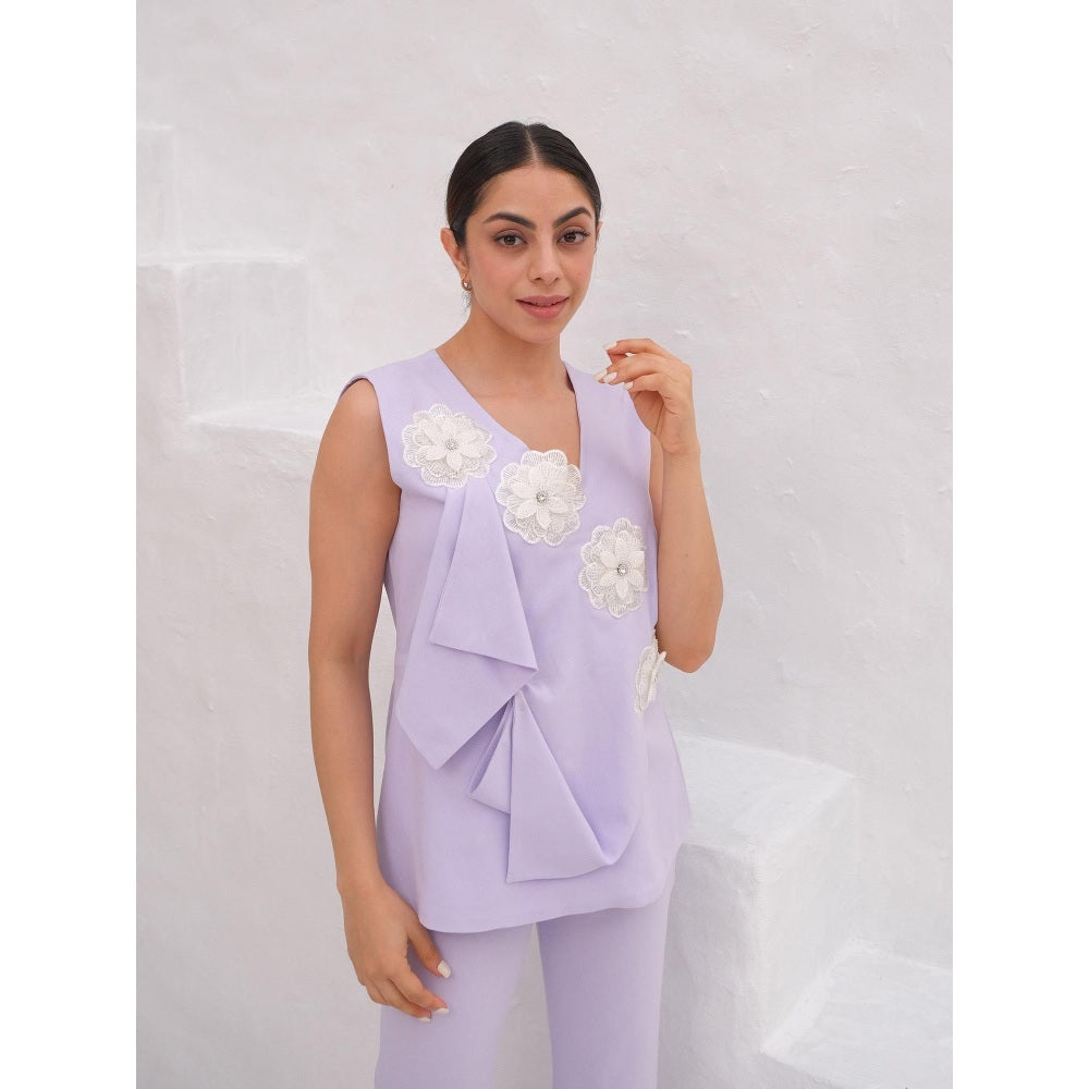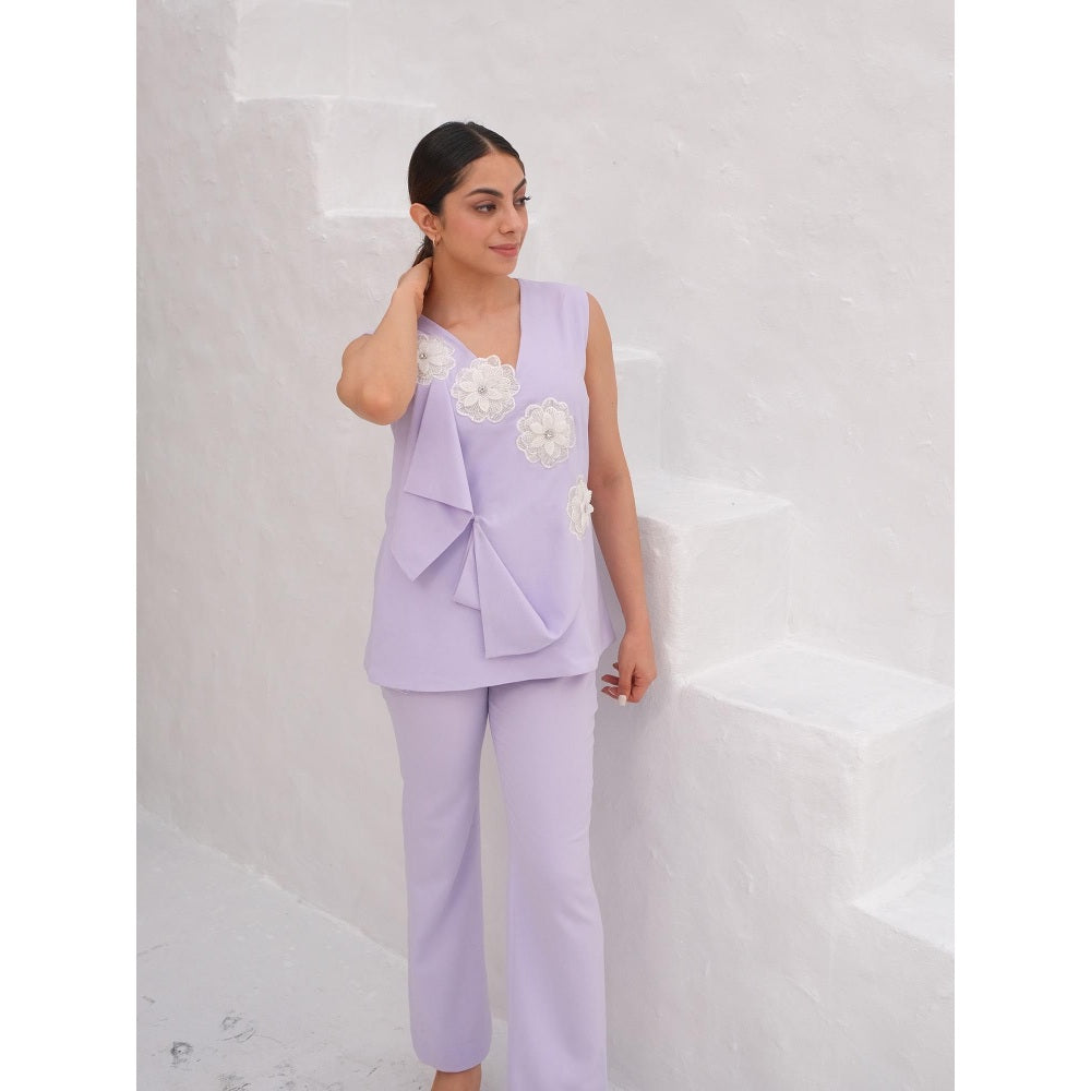 Description : A Lilac Flap Design Co-Ord Set with White 3D Flower
