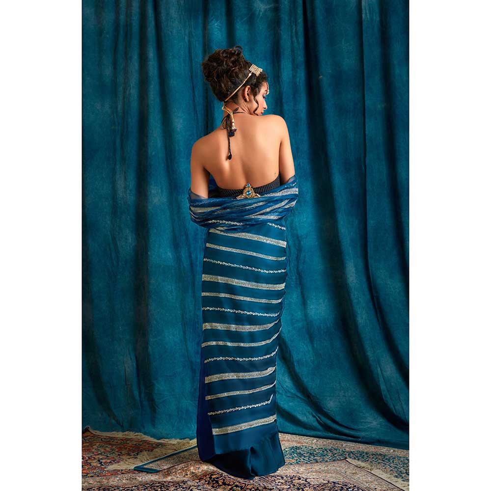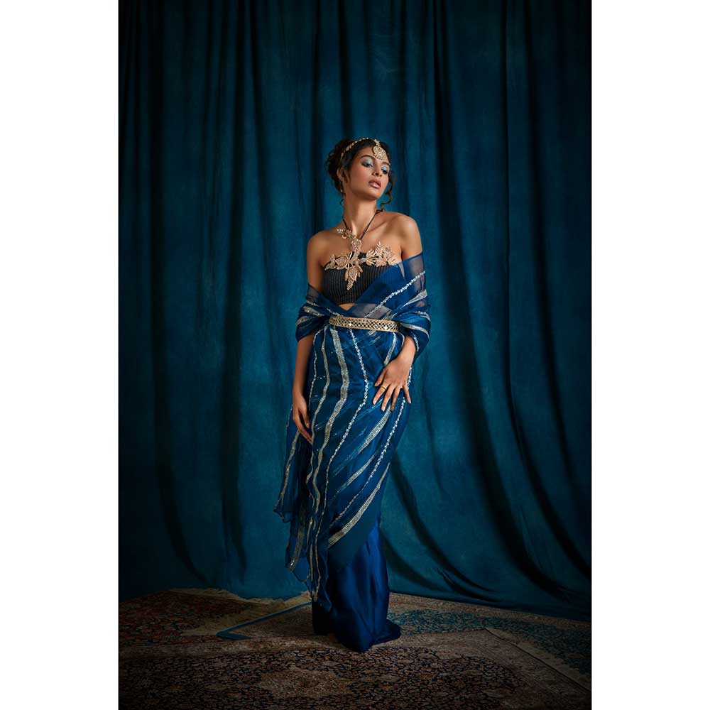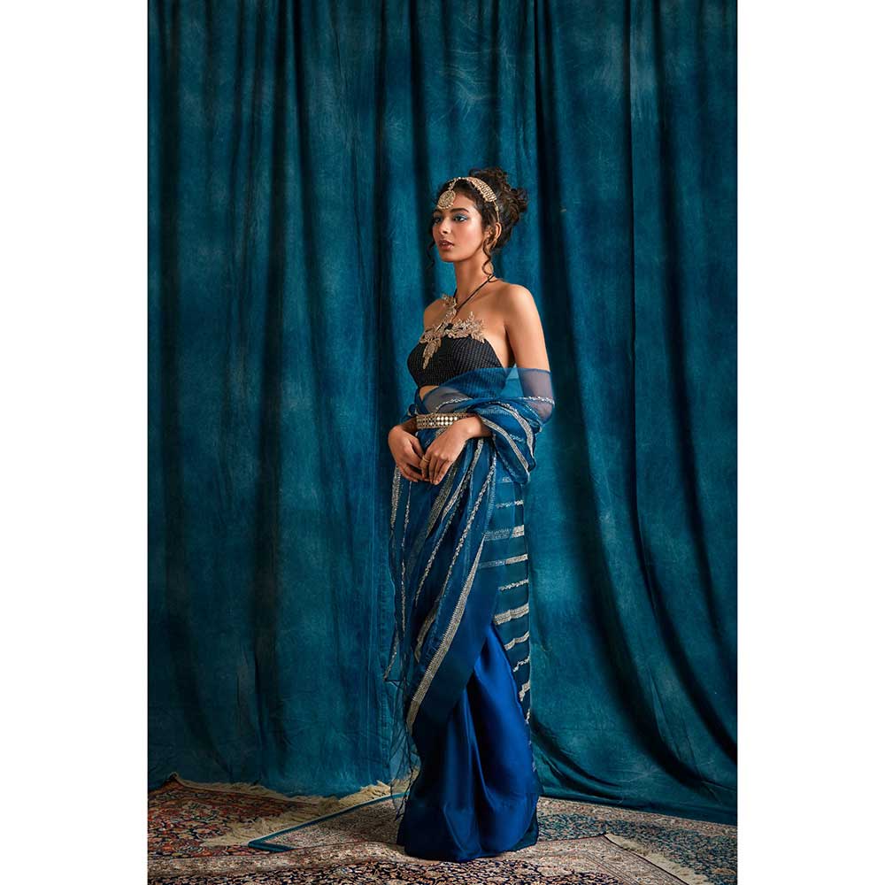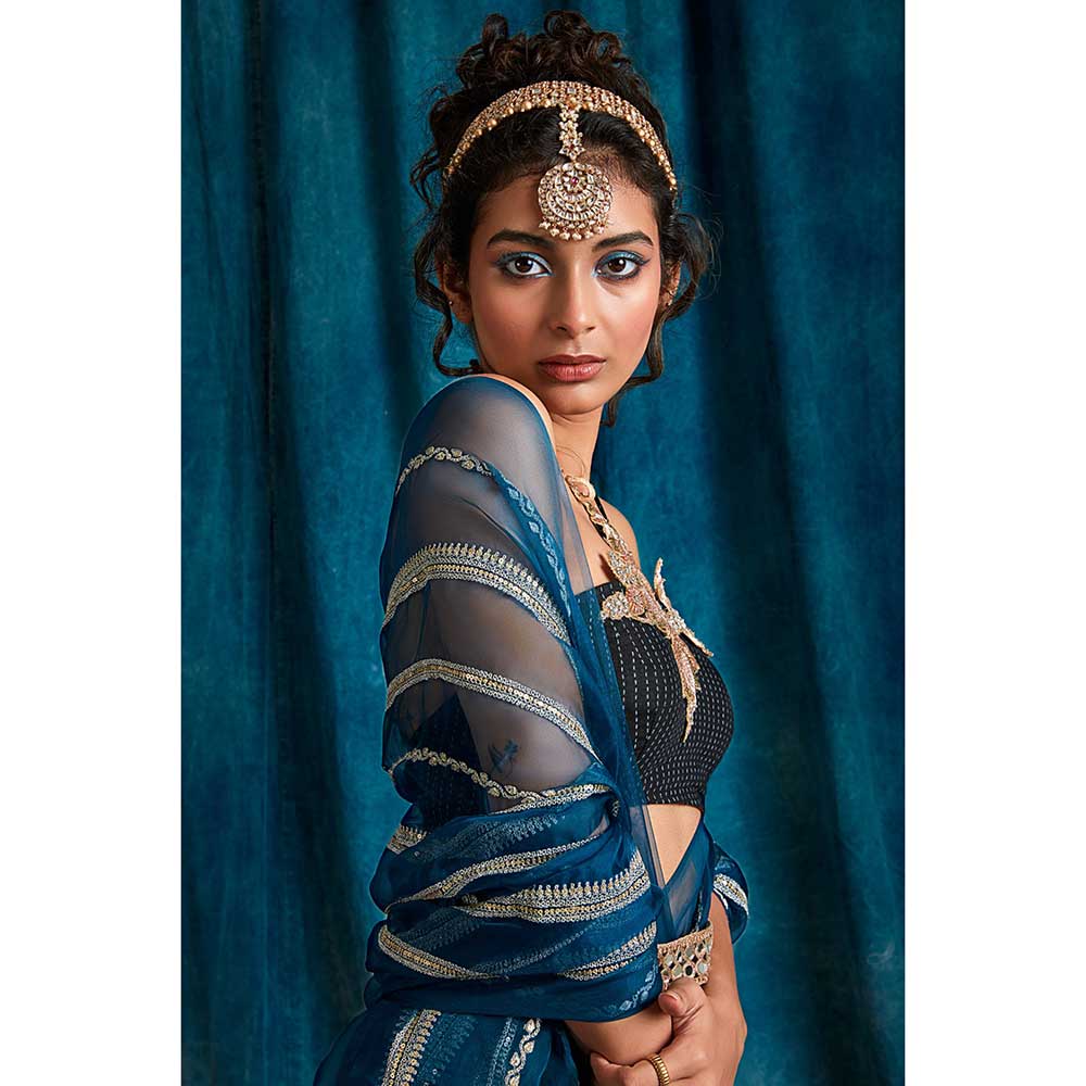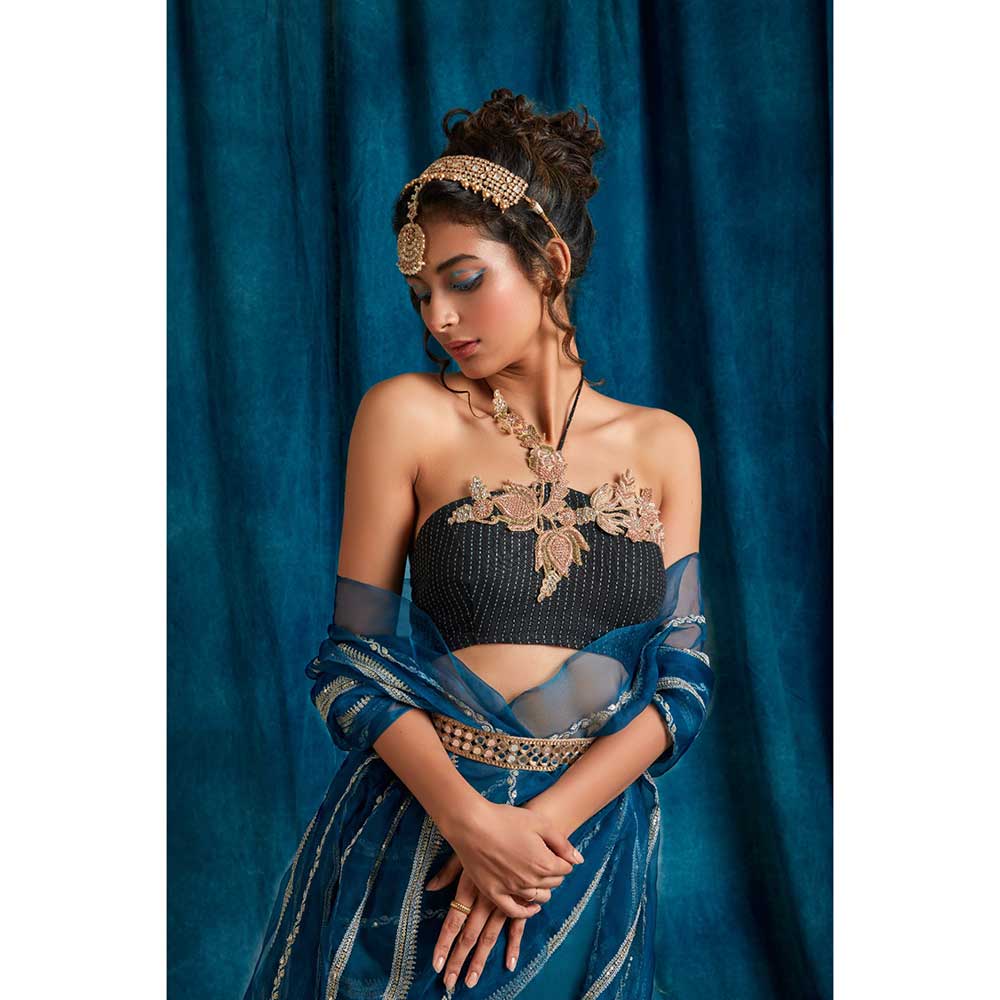 Description : Stay festive ready with this black blouse from RAISHAA. Crafted from linen, it is hand embroidered with a floral yolk and a gemstone clasp. Team with matching sarees and lehengas to look effortlessly stunning.