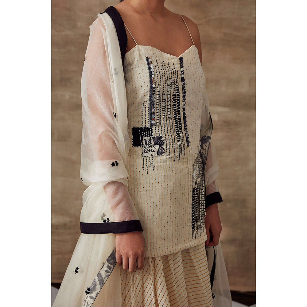 RISHI & VIBHUTI Ivory Circular Kurti Skirt Dupatta (Set of 3)