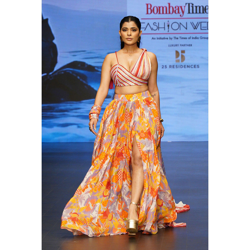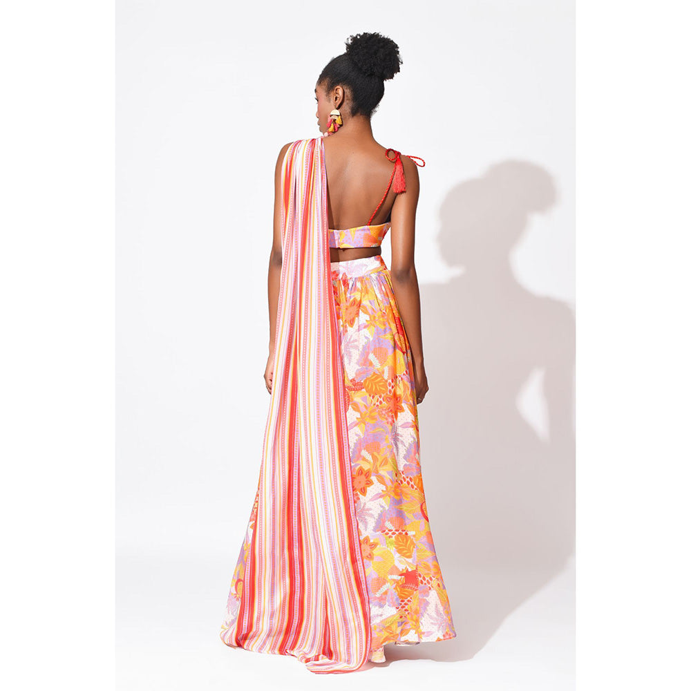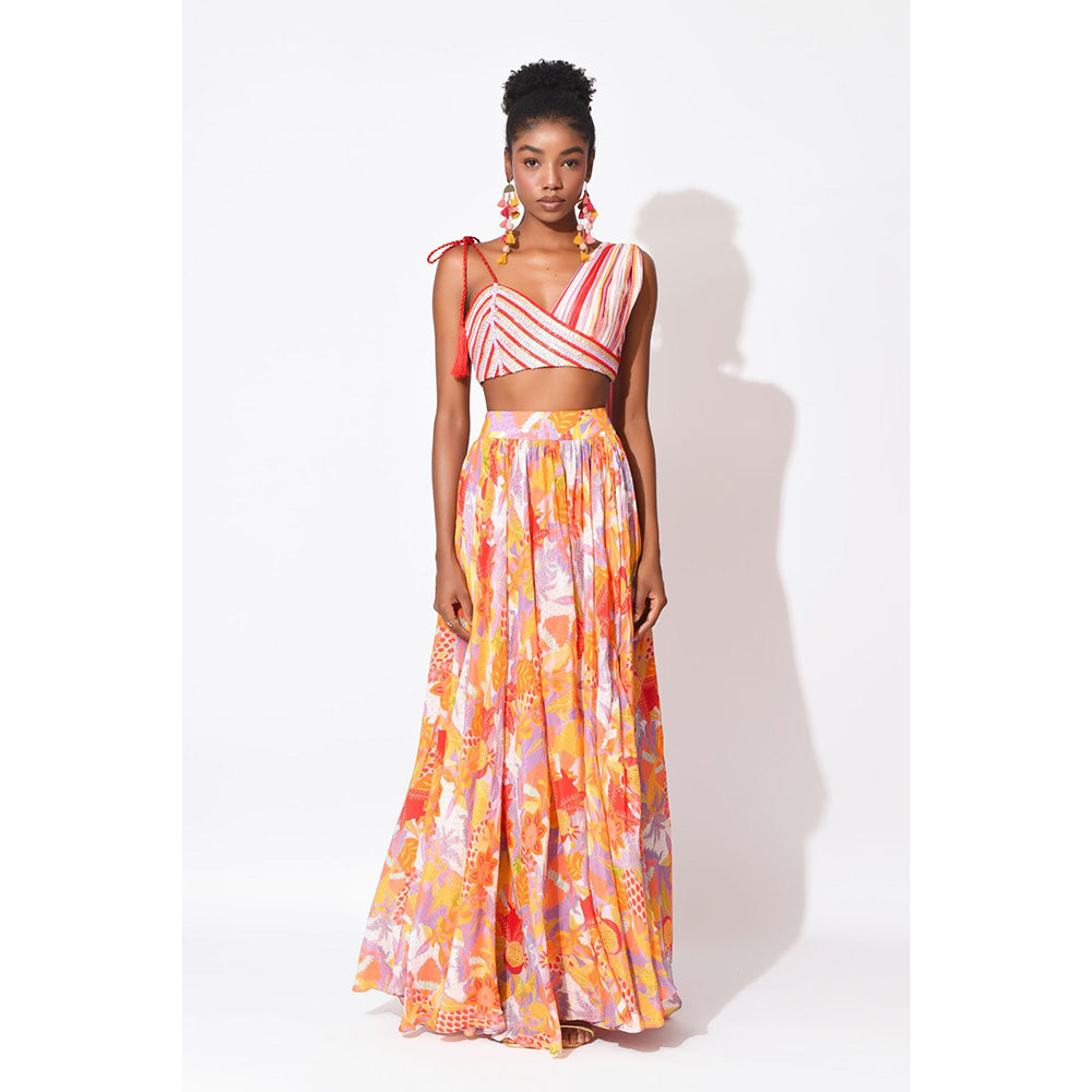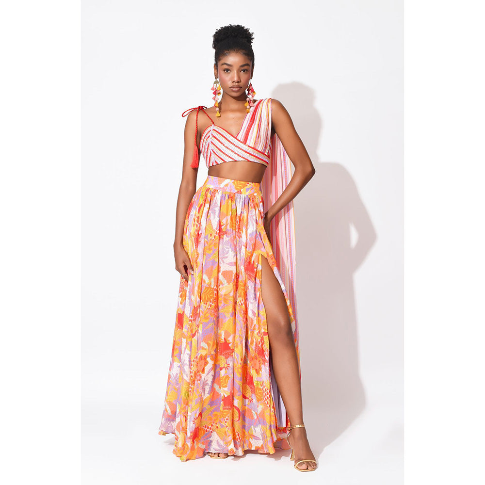 Rishi & Vibhuti Multi Colour Crest fall Top with Skirt (Set of 2)
