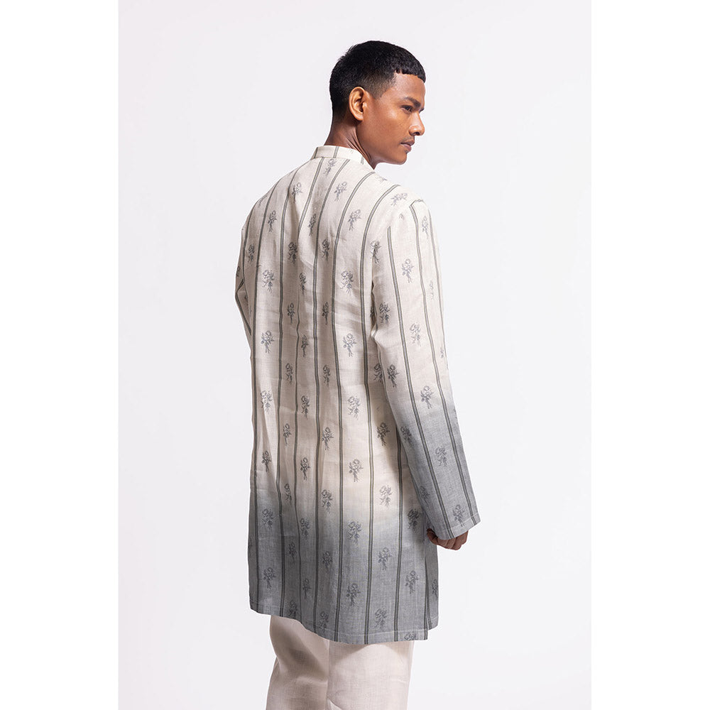 Description : Exude sophistication in this ivory kurta from Rohit Bal. Crafted from linen for a luxe feel, this kurta is finished with full sleeves and a mandarin neck. Team it with a pair of trousers and juttis or monk straps.