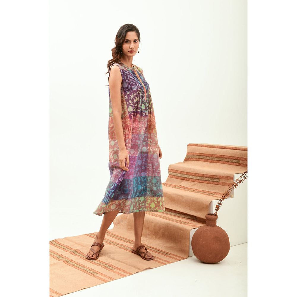 Description : A Sleeveless Midi Dress That Brings Together Two Heritage Crafts. Each Piece Is Printed Using Multiple Blocks, Resulting In Significant Variation In Print Placement. This Is Not A Defect But A Signature Of Its Handcrafted Charm, Making Every Dress One-Of-A-Kind. Key Features Hand Block Printed Over Madras Check Base Each Piece Has A Unique, Non-Replicable Print Layout Pintuck Detailing On Front Yoke Sleeveless, Relaxed, And Breathable In Midi Length Color: Earth Disclaimer: Print Placement Will Vary Significantly From Piece To Piece Due To The Handcrafted Nature Of The Product-This Variation Is Intentional And Part Of Its Uniqueness.