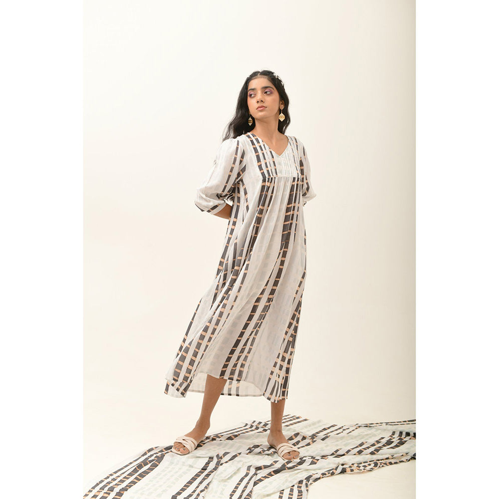 Description : The Timeless Ether Dress Features A Meticulously Crafted Front Yoke Adorned With Pintucks, Adding A Touch Of Sophistication To Your Ensemble. The Calf-Length Design Strikes A Balance Between Style And Ease, Making It Ideal For Various Occasions. The 3/4Th Sleeves With Half Smocked Cuff, Lend A Classic Charm While Ensuring A Versatile Appeal. Elevate Your Wardrobe With This Dress That Effortlessly Combines Grace And Contemporary Flair. Key Features The Dress Includes A Slip For Added Convenience And Comfort. Colour: Monochrome