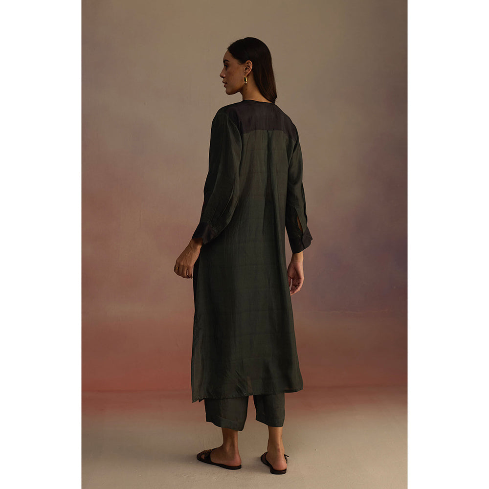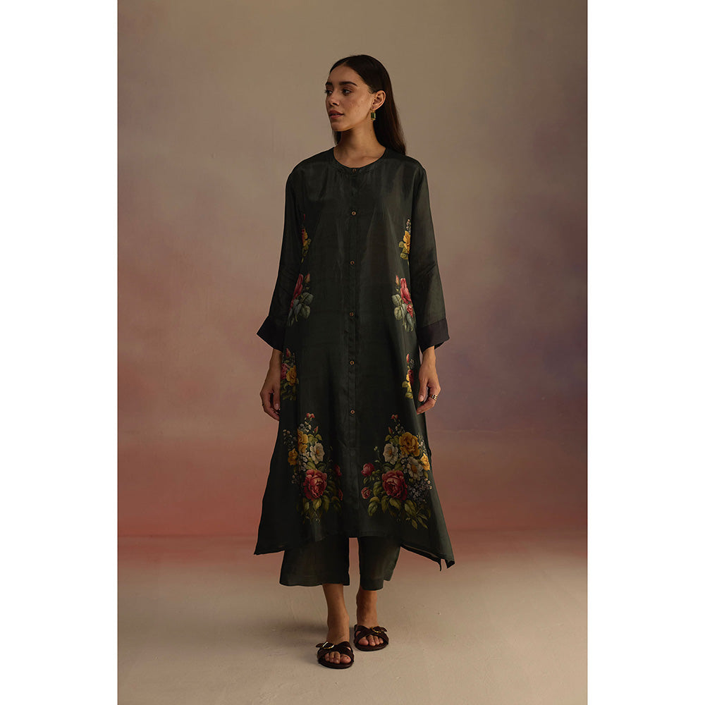 Roza Green Gladioly Floral Printed Kurta with Pant (Set of 2)