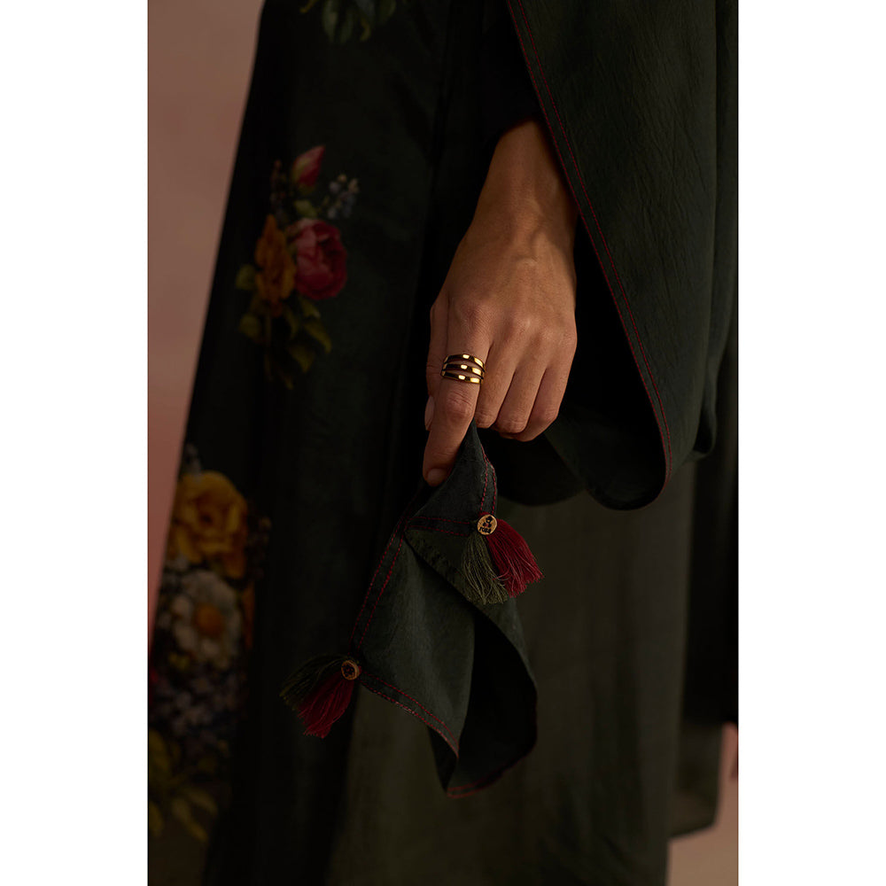 Description : An Open Panel Kurta Set with A Cascading Floral Print Kurta Featuring Signature Roza Buttons and Color-Blocked Cuffs. The Set Comes with A Pair Of Straight Legged Pants.