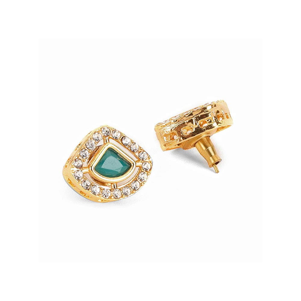 Kundan Stud Earrings with Green Stone