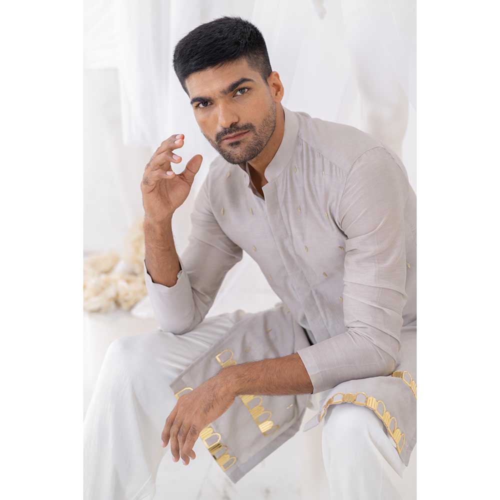 Runit Gupta Grey Khidki Kurta with Salwar (Set of 2)
