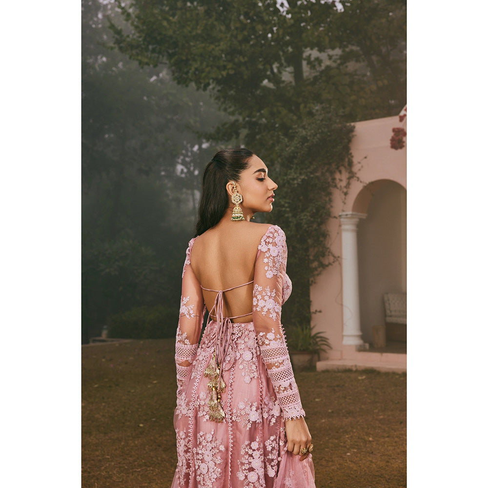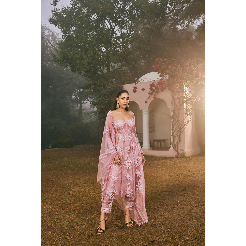 Saanjh by Lea Fariha Blush Pink Embroidered Anarkali Kurta with Pant and Dupatta (Set of 3)