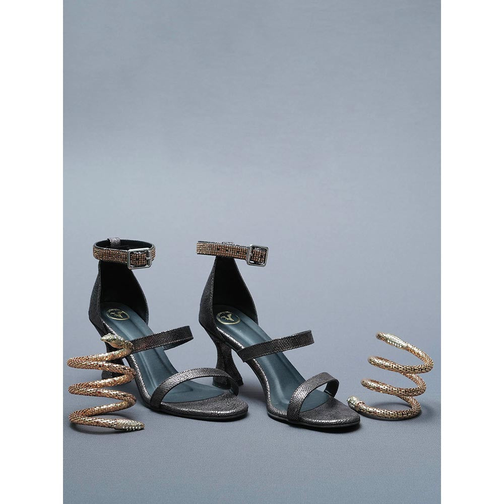 Sana K Luxurious Footwear Brown Mesh Bangle Heels with Detachable Spring (Set of 2)