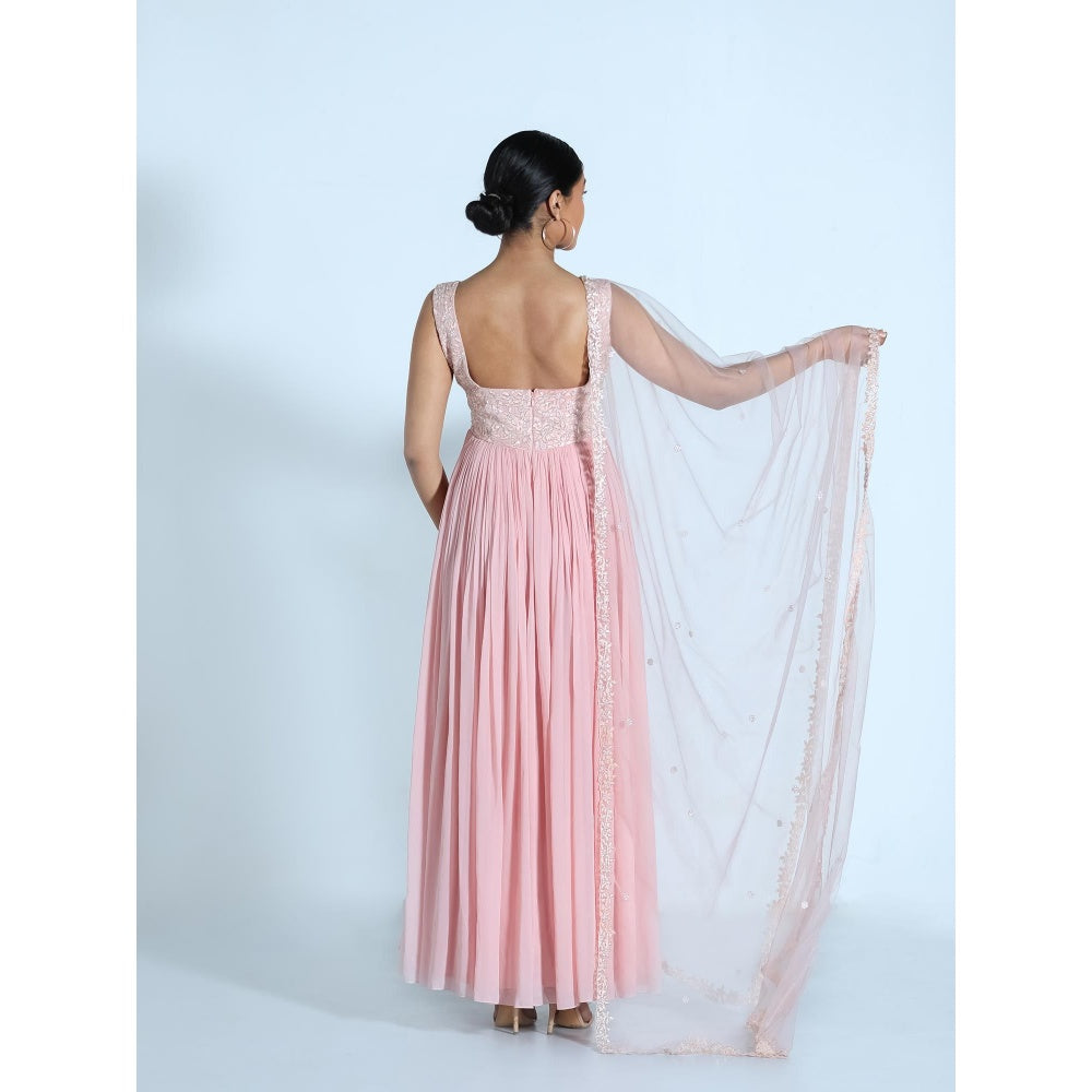 Pink Embroidered Anarkali And Dupatta (Set of 2)