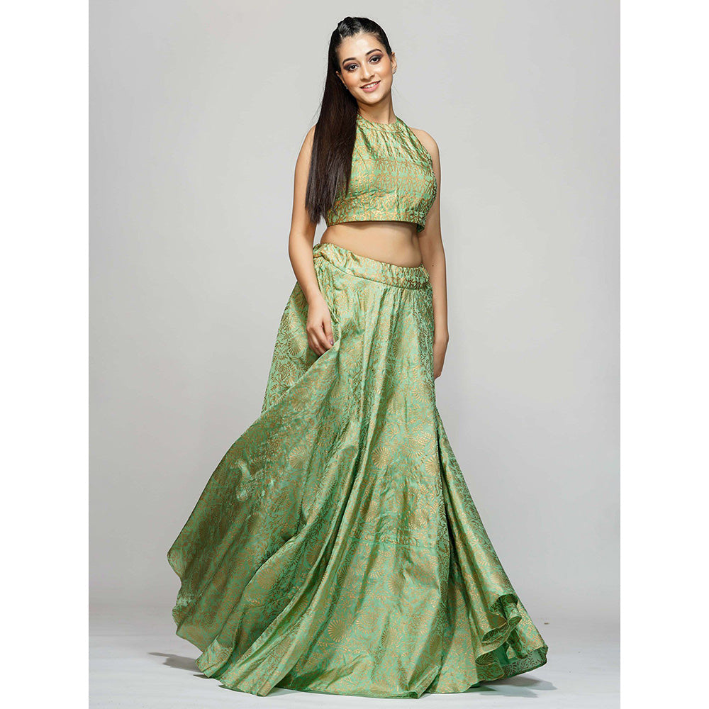 Shruti S Green Metallic Hand Block Lehenga (Set of 3)
