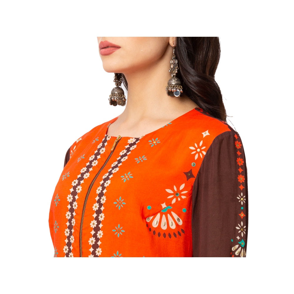 Coffee Printed Kurta And Pants (Set of 2)