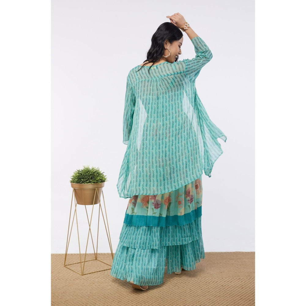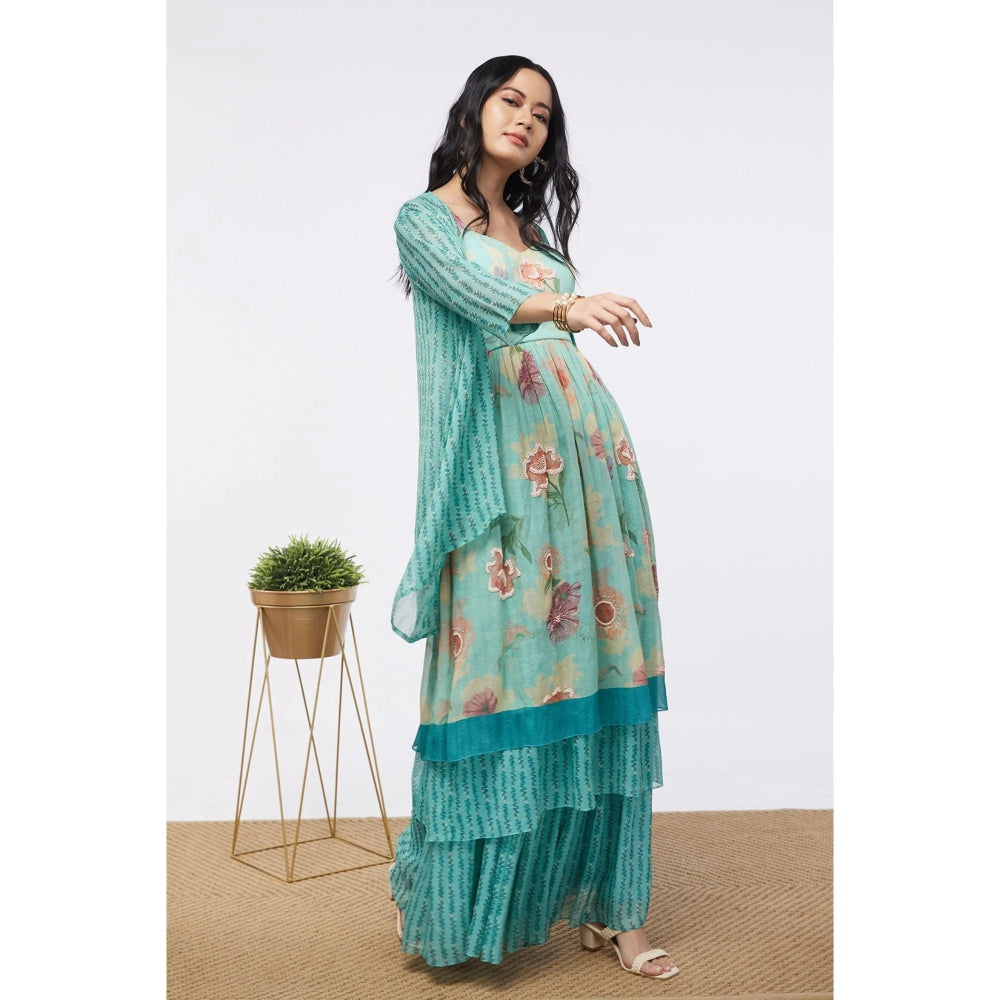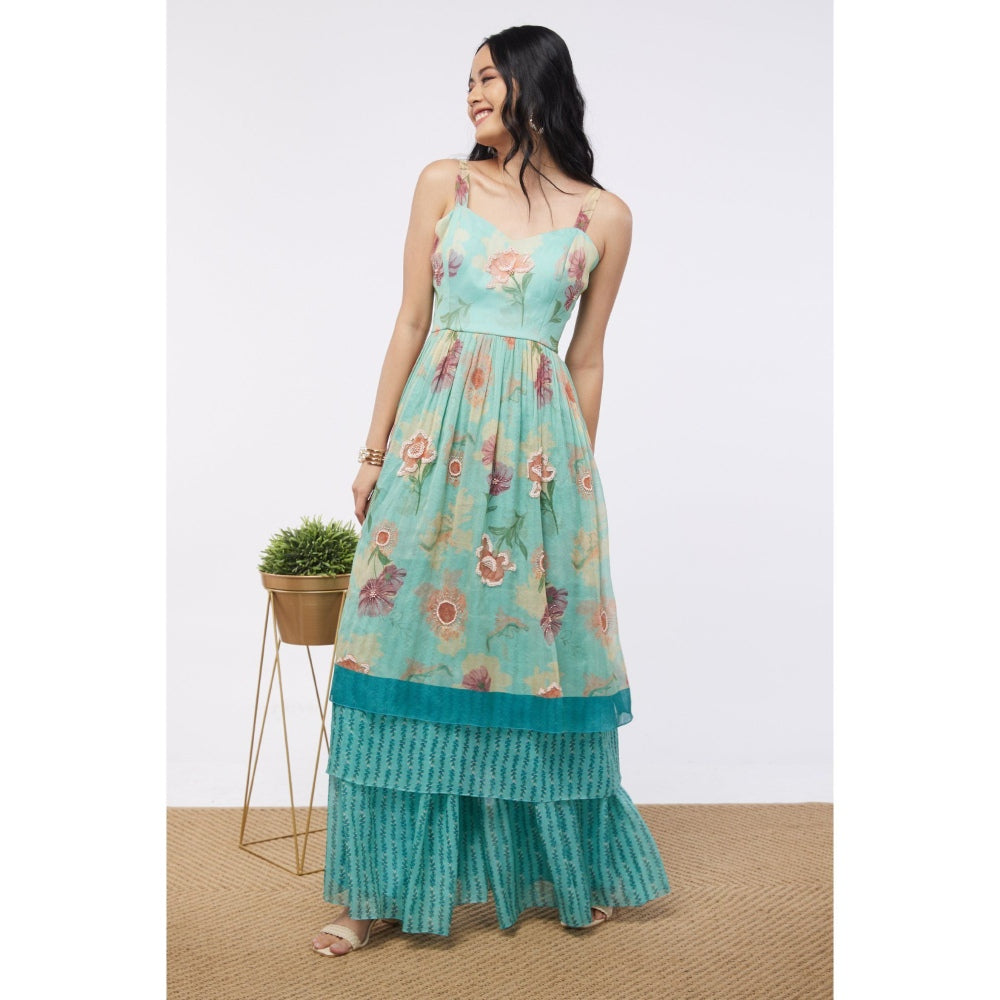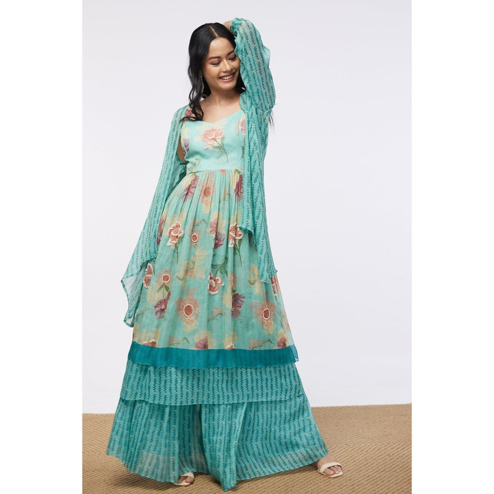 Soup by Sougat Paul Mint Blue Blooming Bud Floral Sharara (Set of 3)
