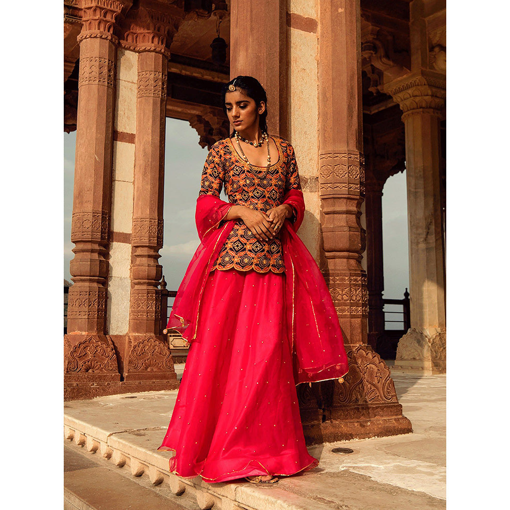 Swati Vijaivargie Jalmahal Lehenga with Kurti & Dupatta (Set of 3)