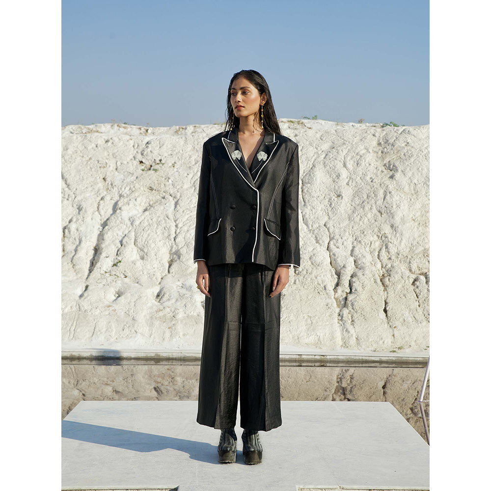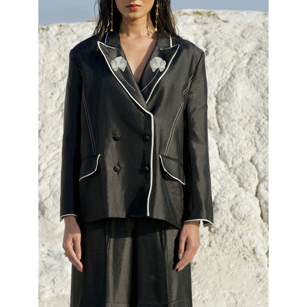 The Loom Art Black Spade Blazer Bralette with Trouser (Set of 3)