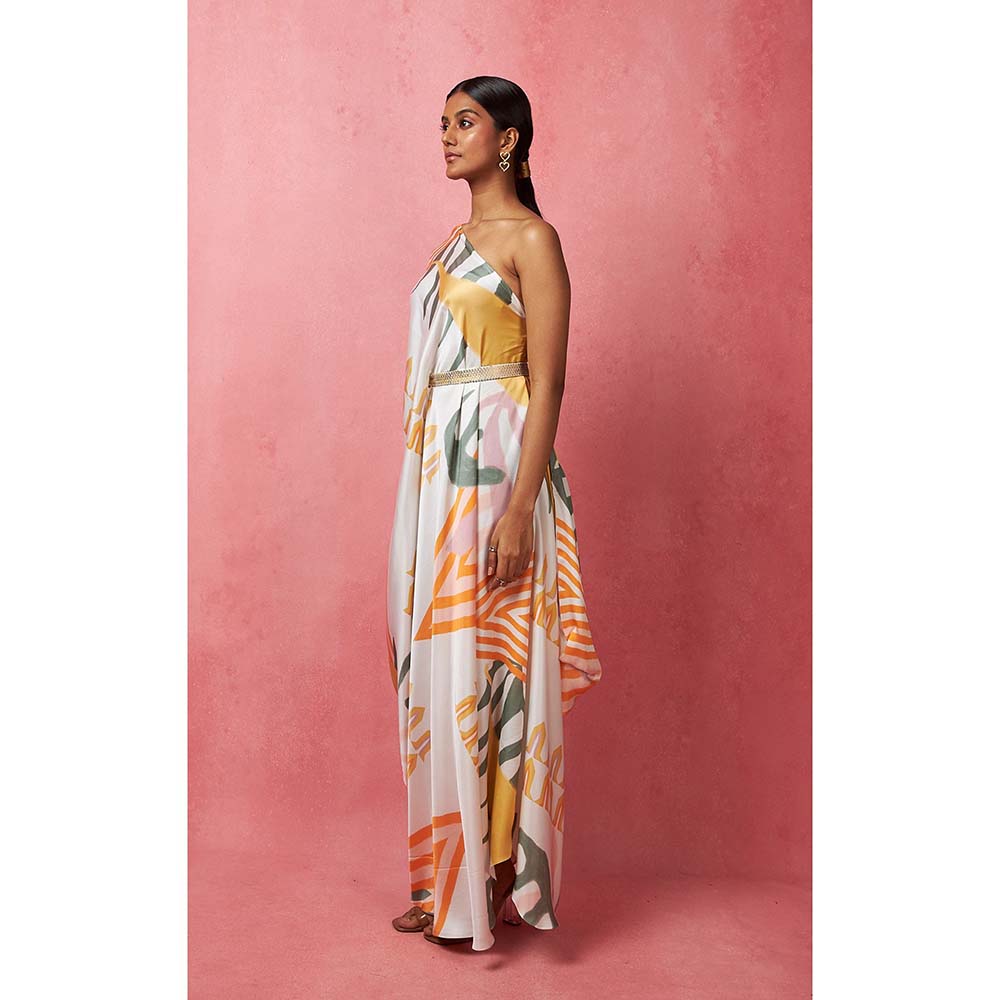 Vedika M Multi-Color One Shoulder Drape Maxi Dress (Set of 2)