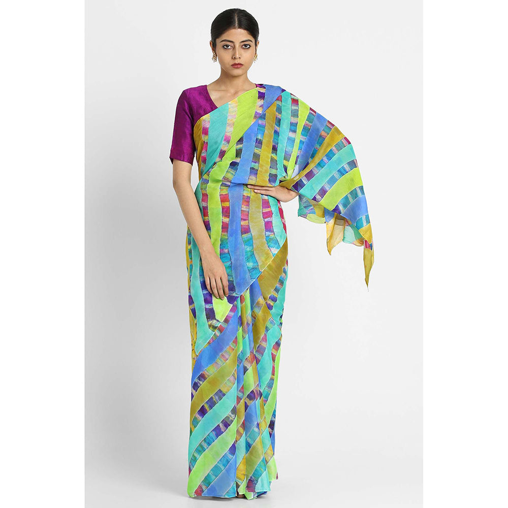 Via East Blue Basant Chiffon Multi Leheriya Saree with Unstitched Blouse