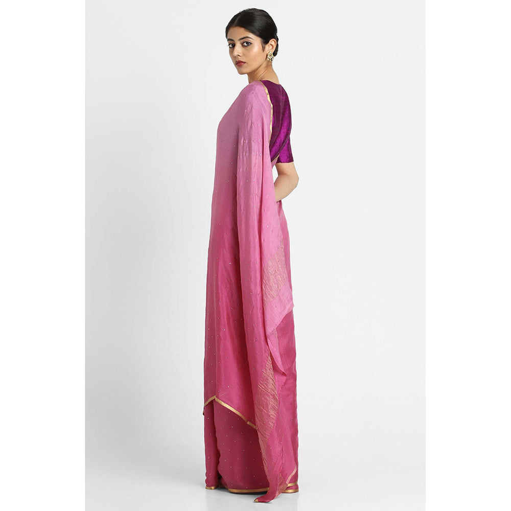 Via East Onion Pink Ombre Mukaish Crepe Saree with Unstitched Blouse